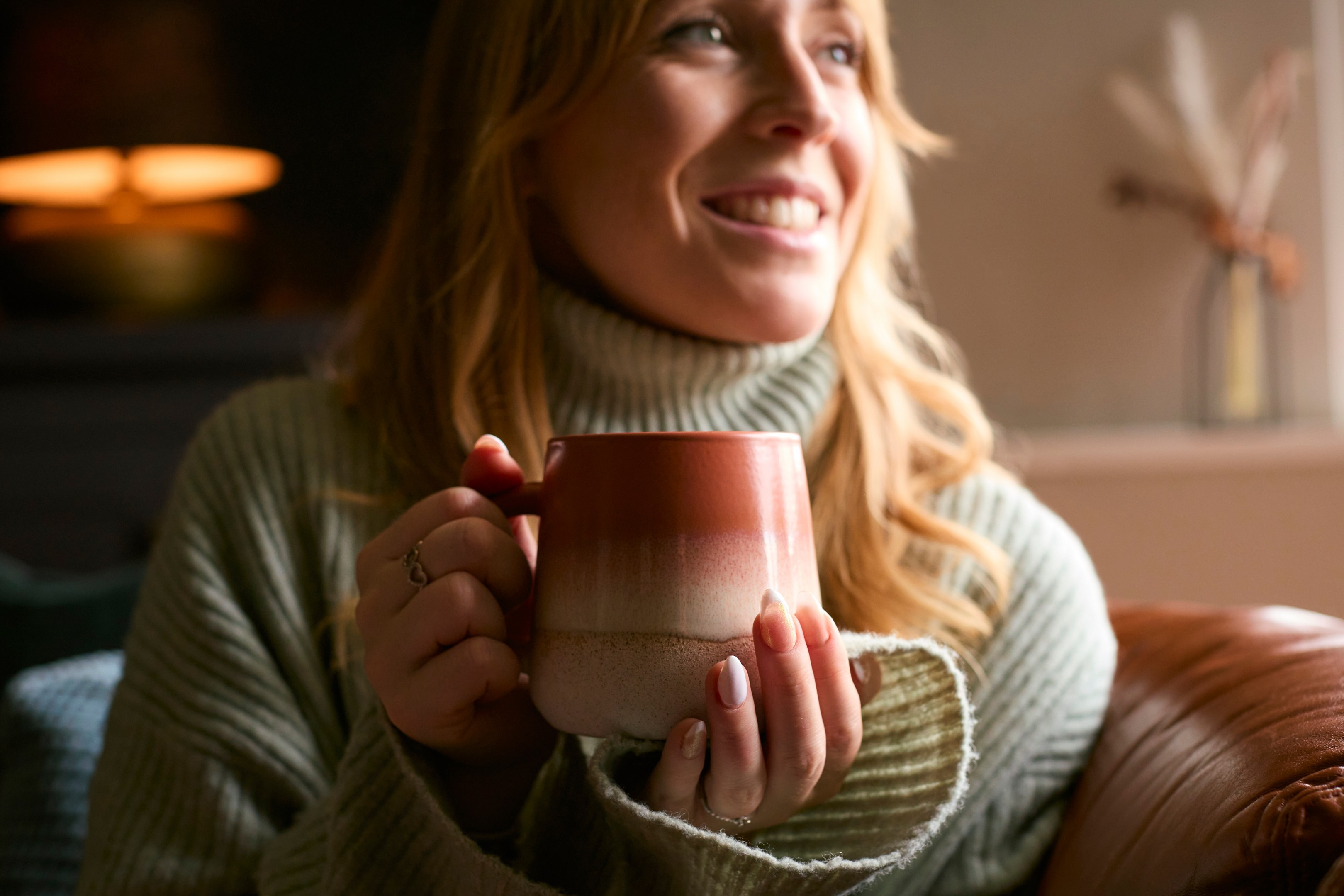 • Set the mood with lighting: Combine ambient overhead lights with a warm-toned floor or table lamp to cast that cozy glow.